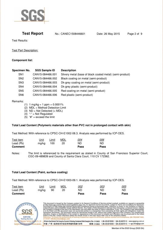 深圳豪順拉鏈《加州65鉛和鄰苯測試報告》第2頁